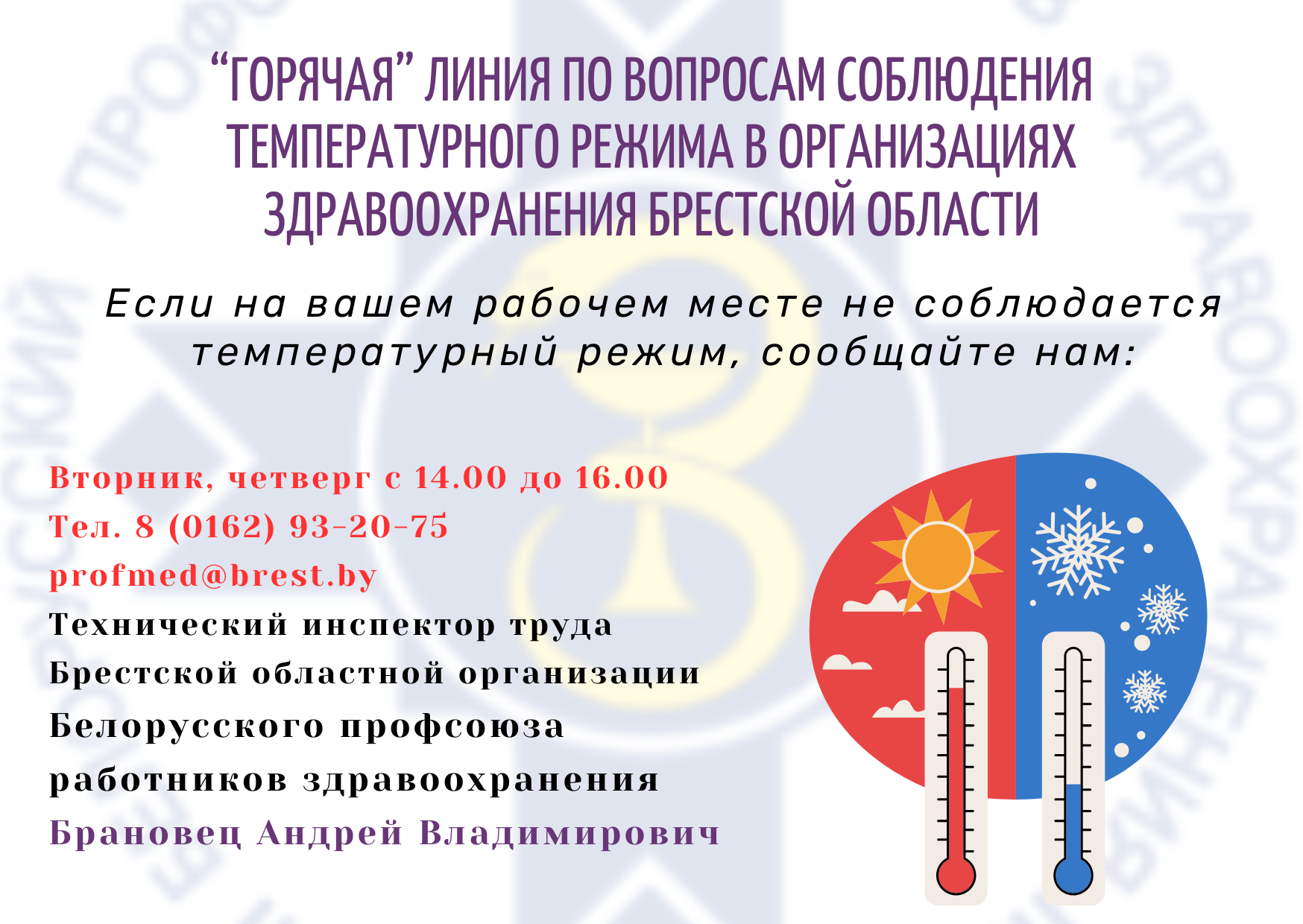 "Горячая линия" по вопросам соблюдения температурного режима в организация здравоохранения Брестской области