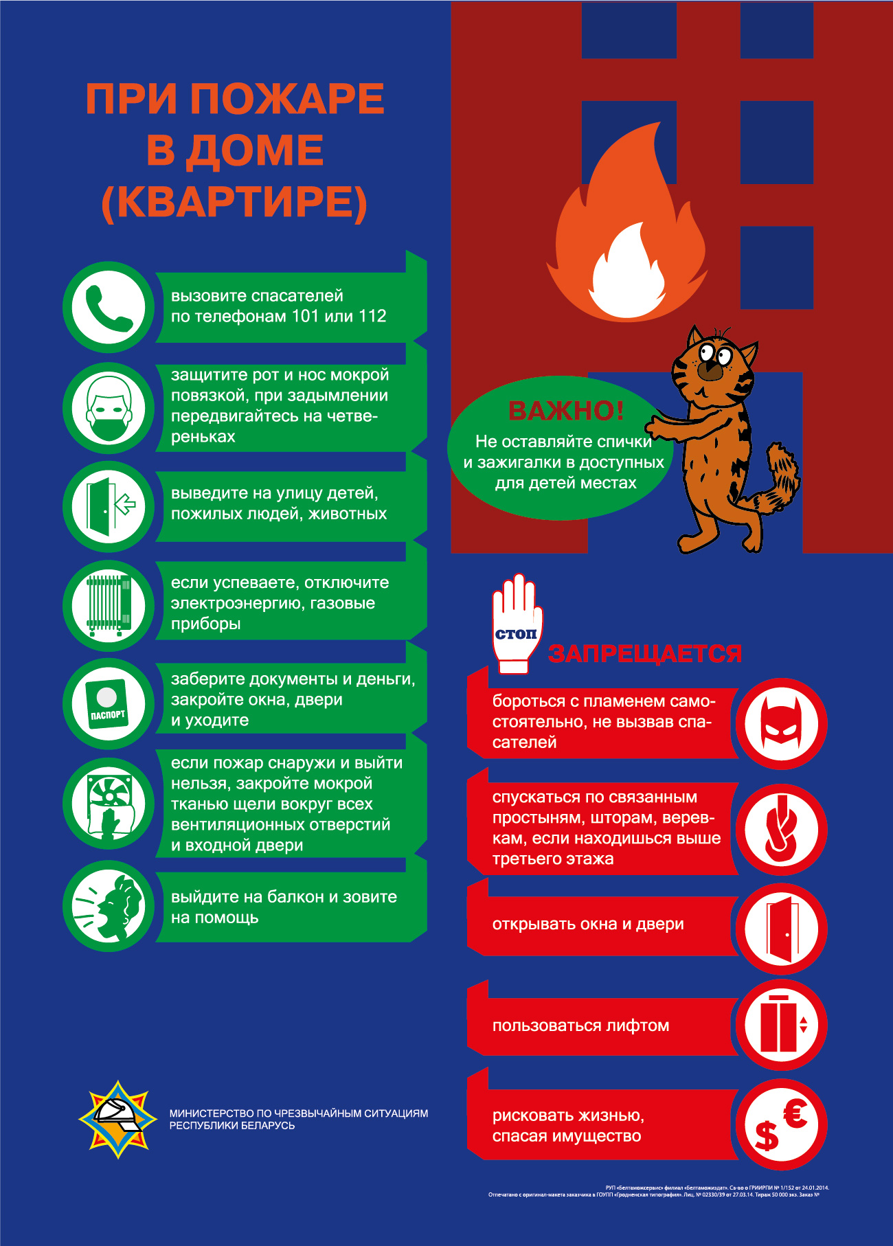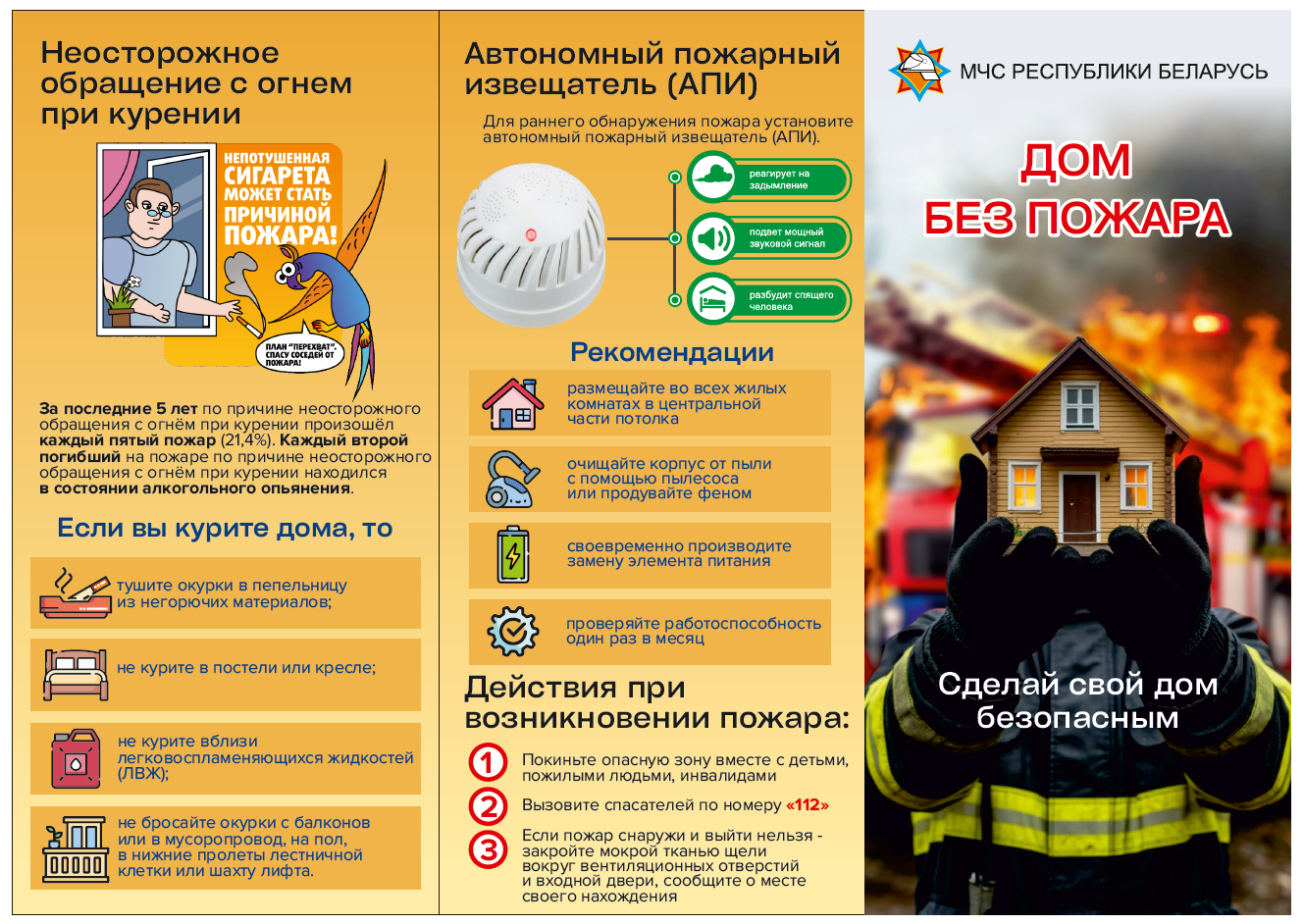 МЧС напоминает: в соответствии с законодательством Республики Беларусь ответственность за соблюдение требований пожарной безопасности в жилых домах, принадлежащих гражданам на праве частной собственности, возложена на их собственников. Поэтому проверьте на работоспособность автономные пожарные извещатели, а в случае их отсутствия – установите их в жилых помещениях домовладения. Обратите внимание на исправность отопительного оборудования и электрической проводки. Не оставляйте детей без присмотра взрослых!