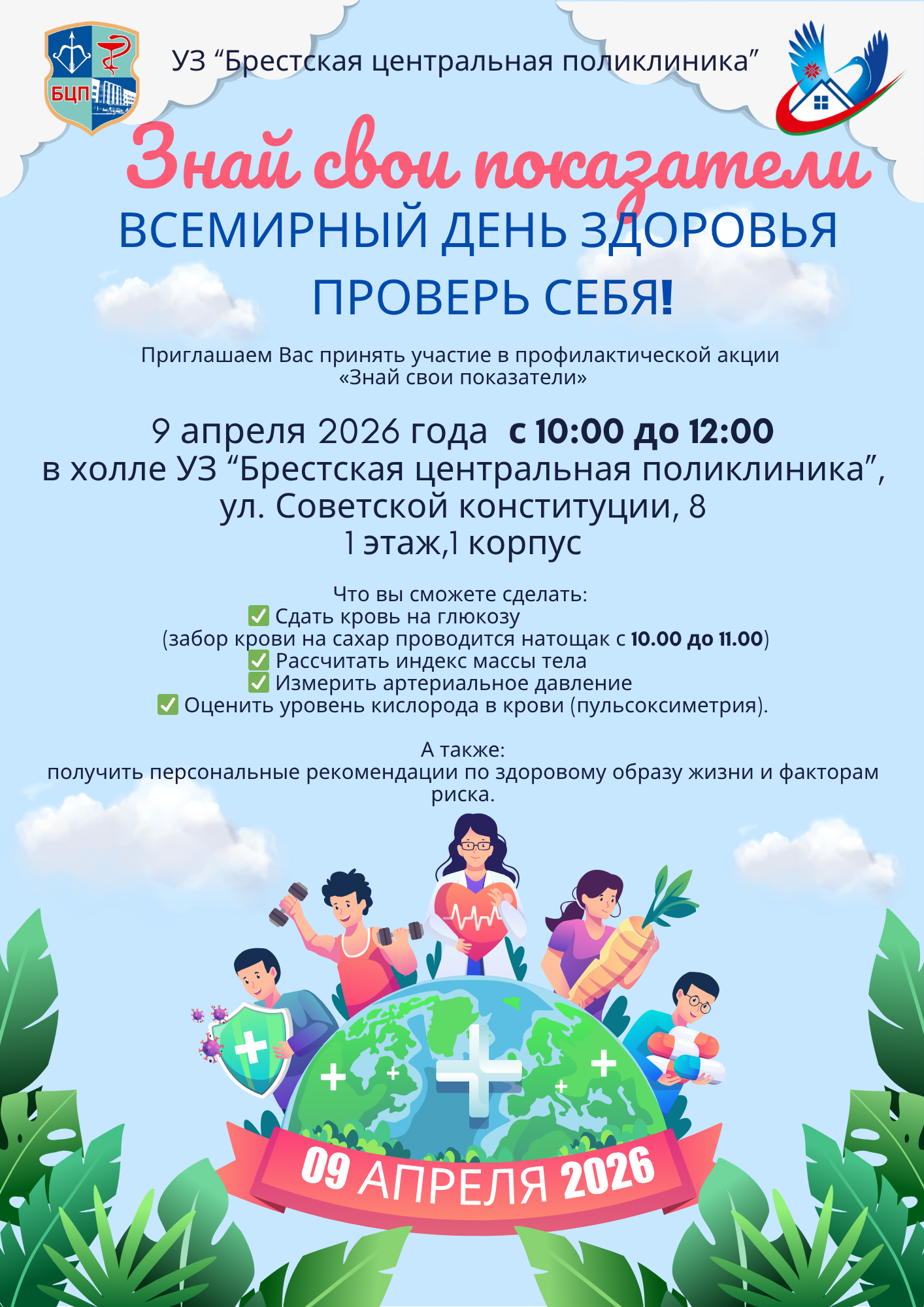 Ежегодно мы отмечаем Всемирный день здоровья. В этом году приглашаем вас не просто вспомнить о здоровье, а сделать первый шаг к его сохранению.