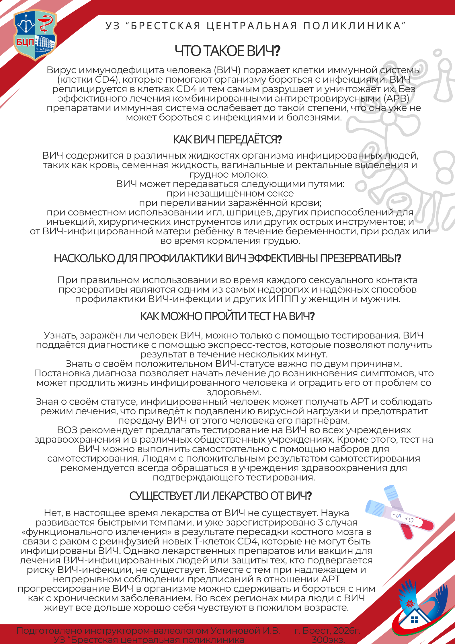 Вирус иммунодефицита человека (ВИЧ) поражает клетки иммунной системы (клетки CD4), которые помогают организму бороться с инфекциями. ВИЧ реплицируется в клетках CD4 и тем самым разрушает и уничтожает их. Без эффективного лечения комбинированными антиретровирусными (АРВ) препаратами иммунная система ослабевает до такой степени, что она уже не может бороться с инфекциями и болезнями.