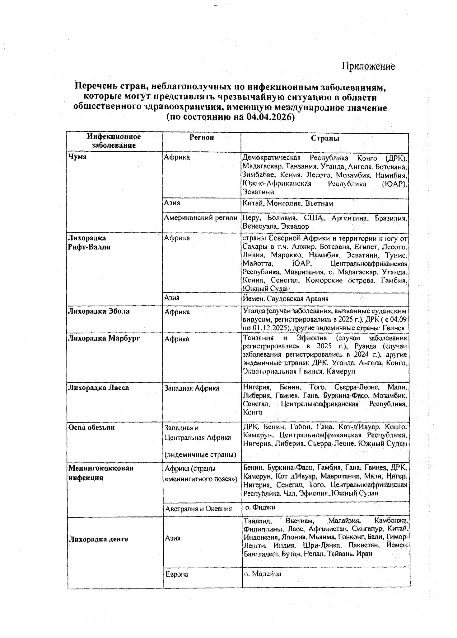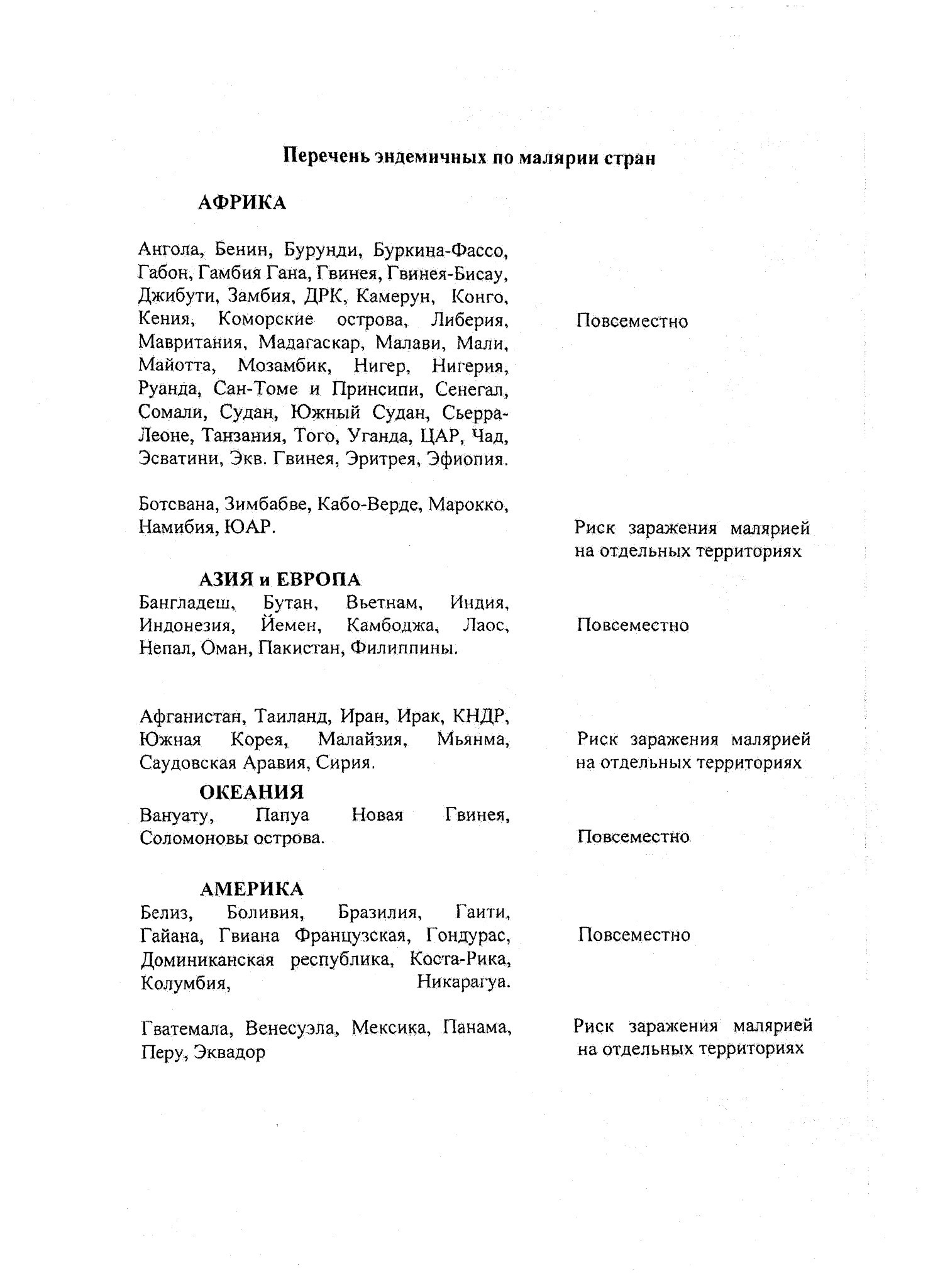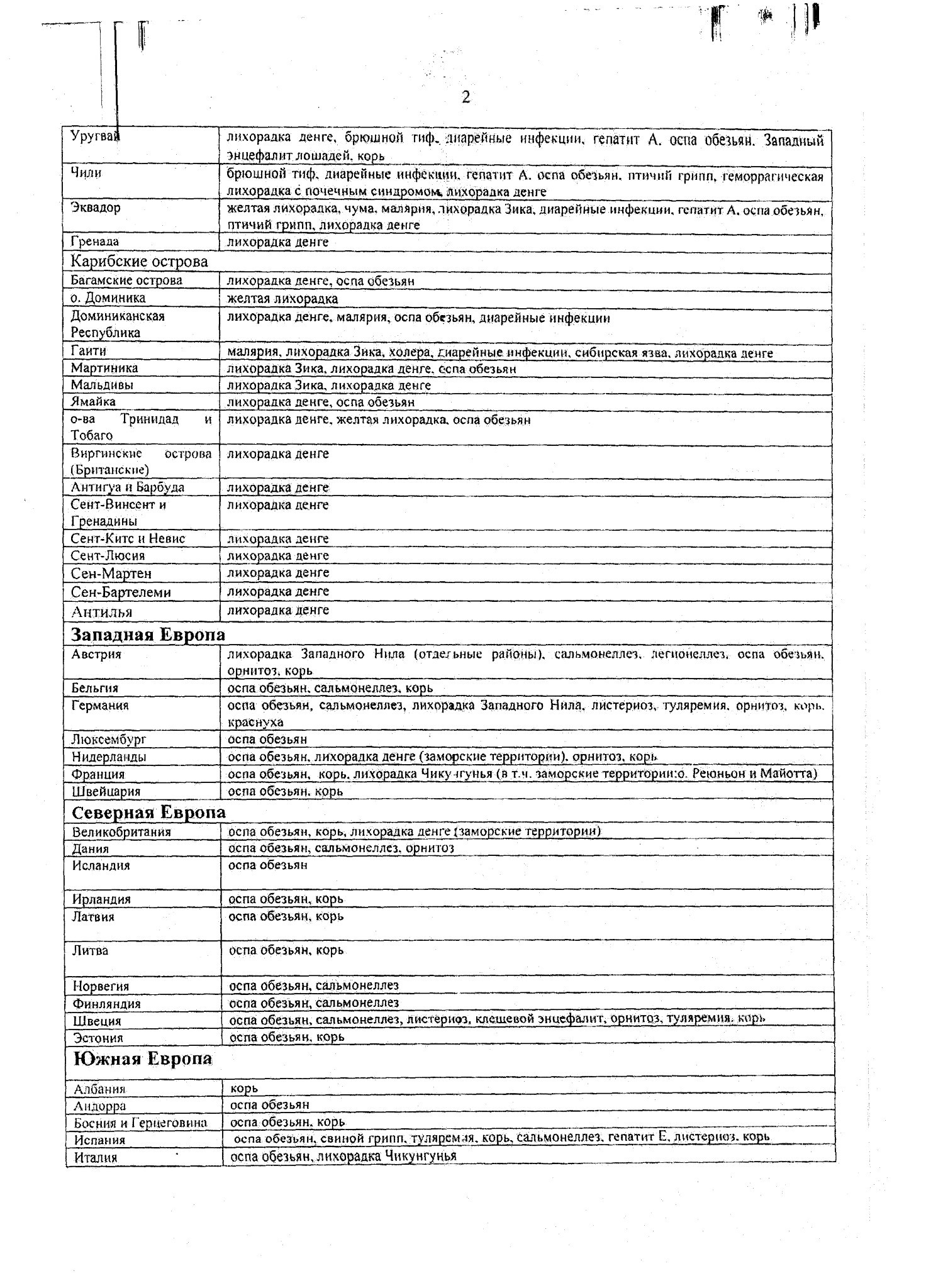 Перечень стран неблагополучных по инфекционным заболеваниям