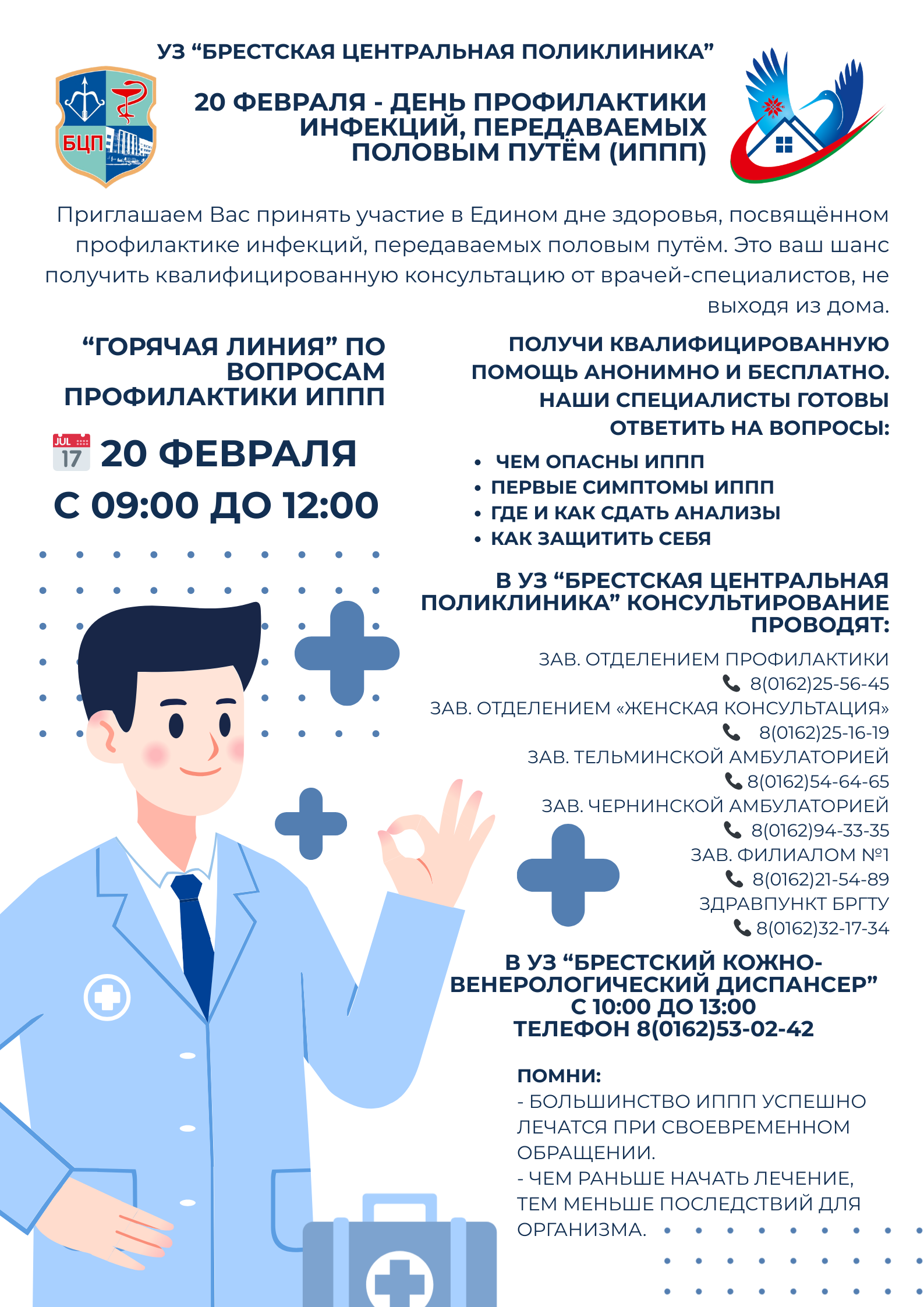 20 февраля в УЗ "Брестская центральная поликлиника" пройдёт "Горячая линия"