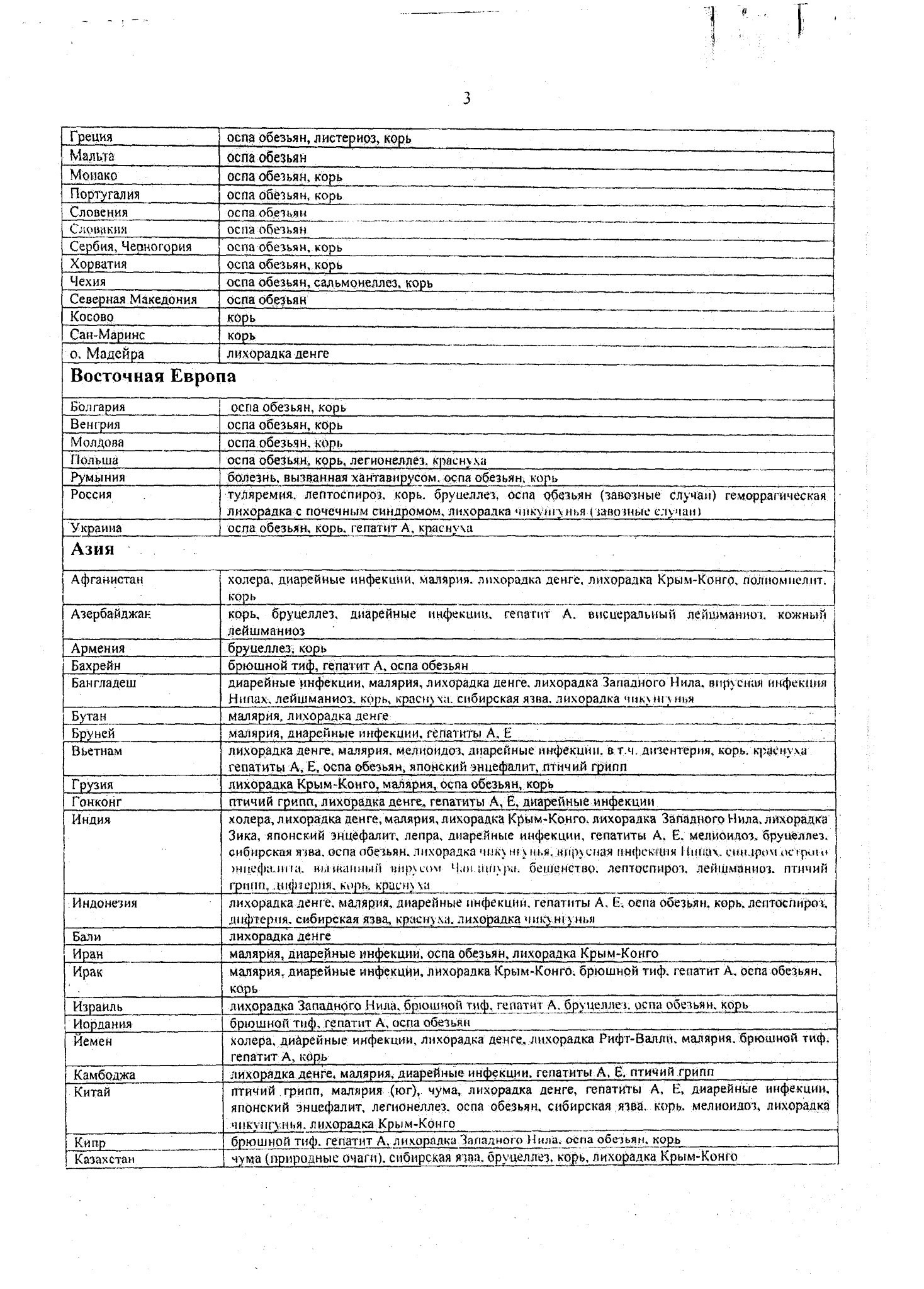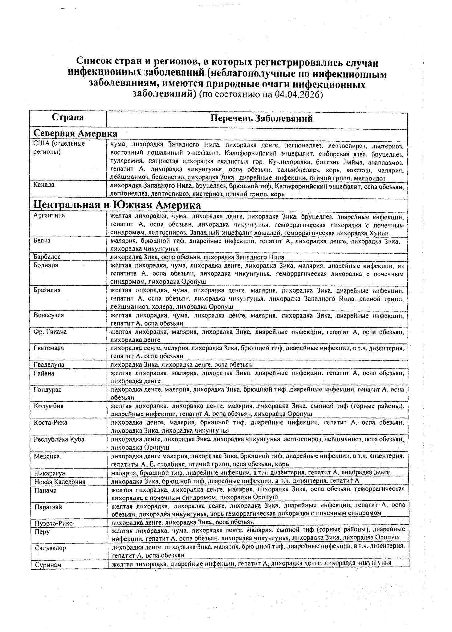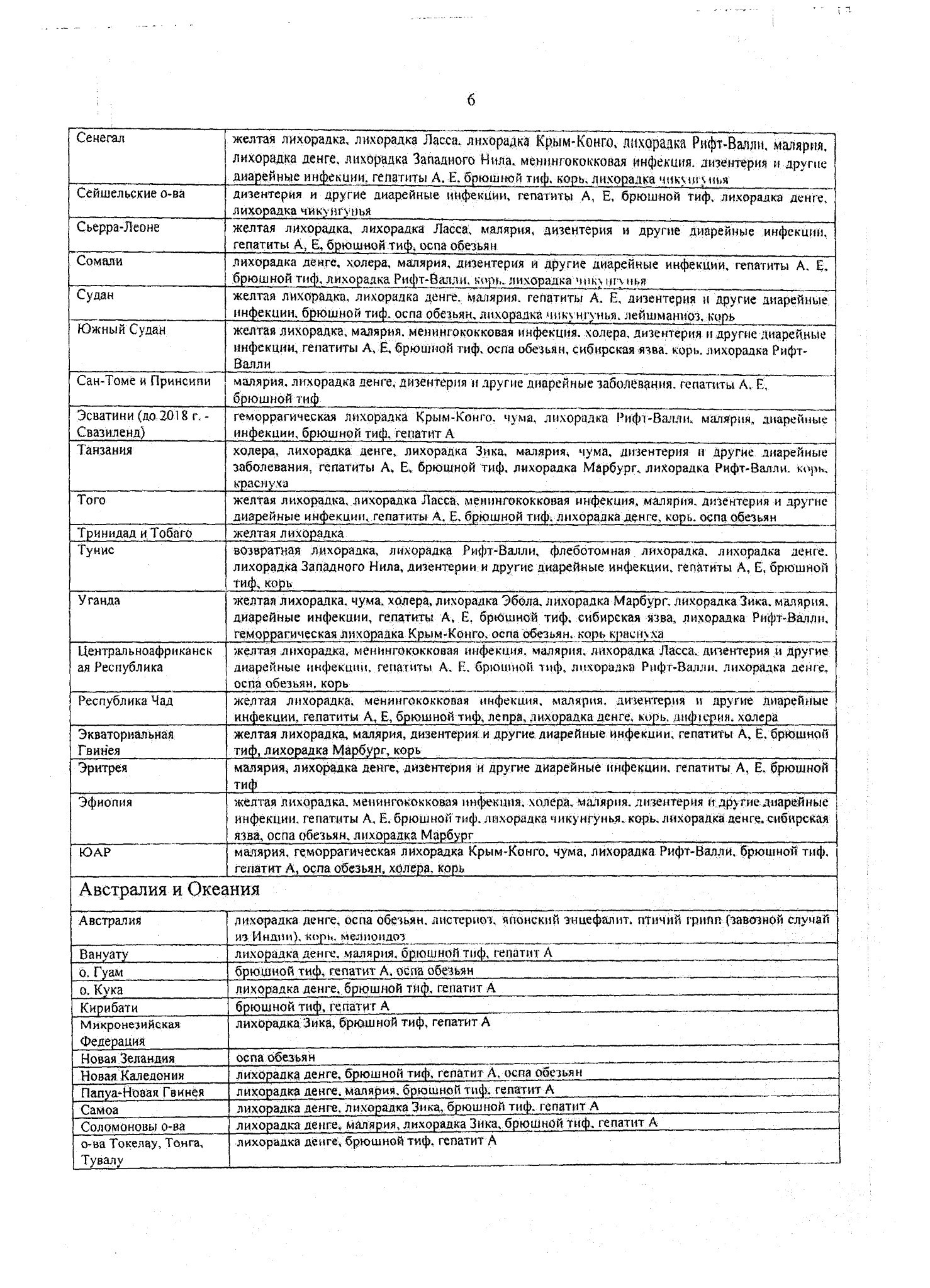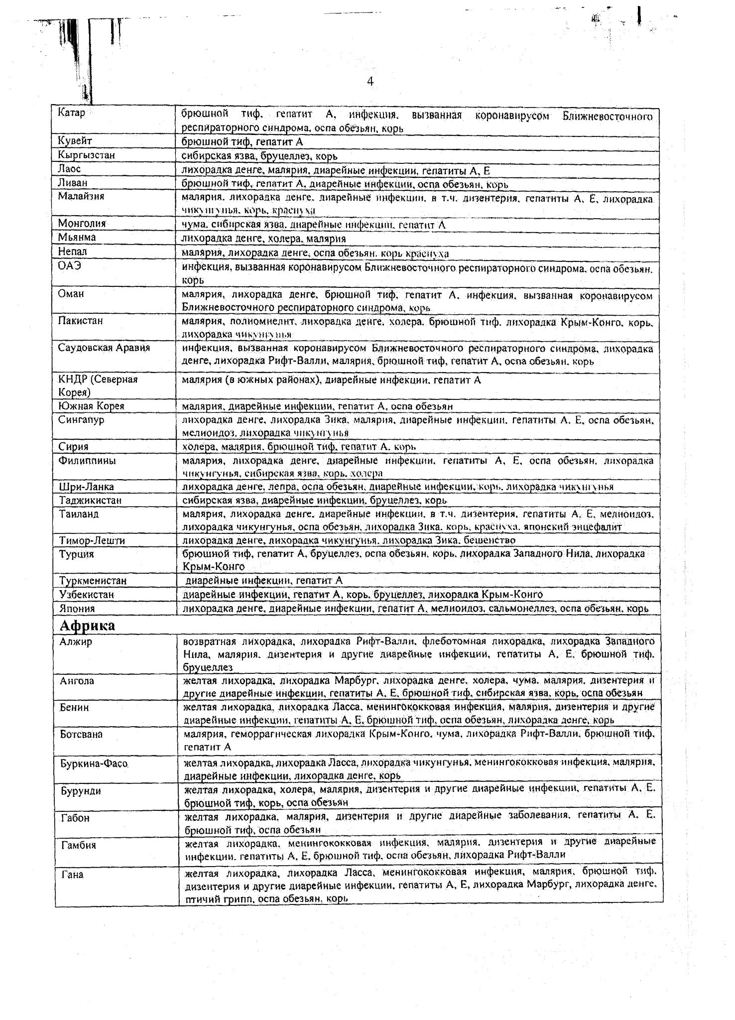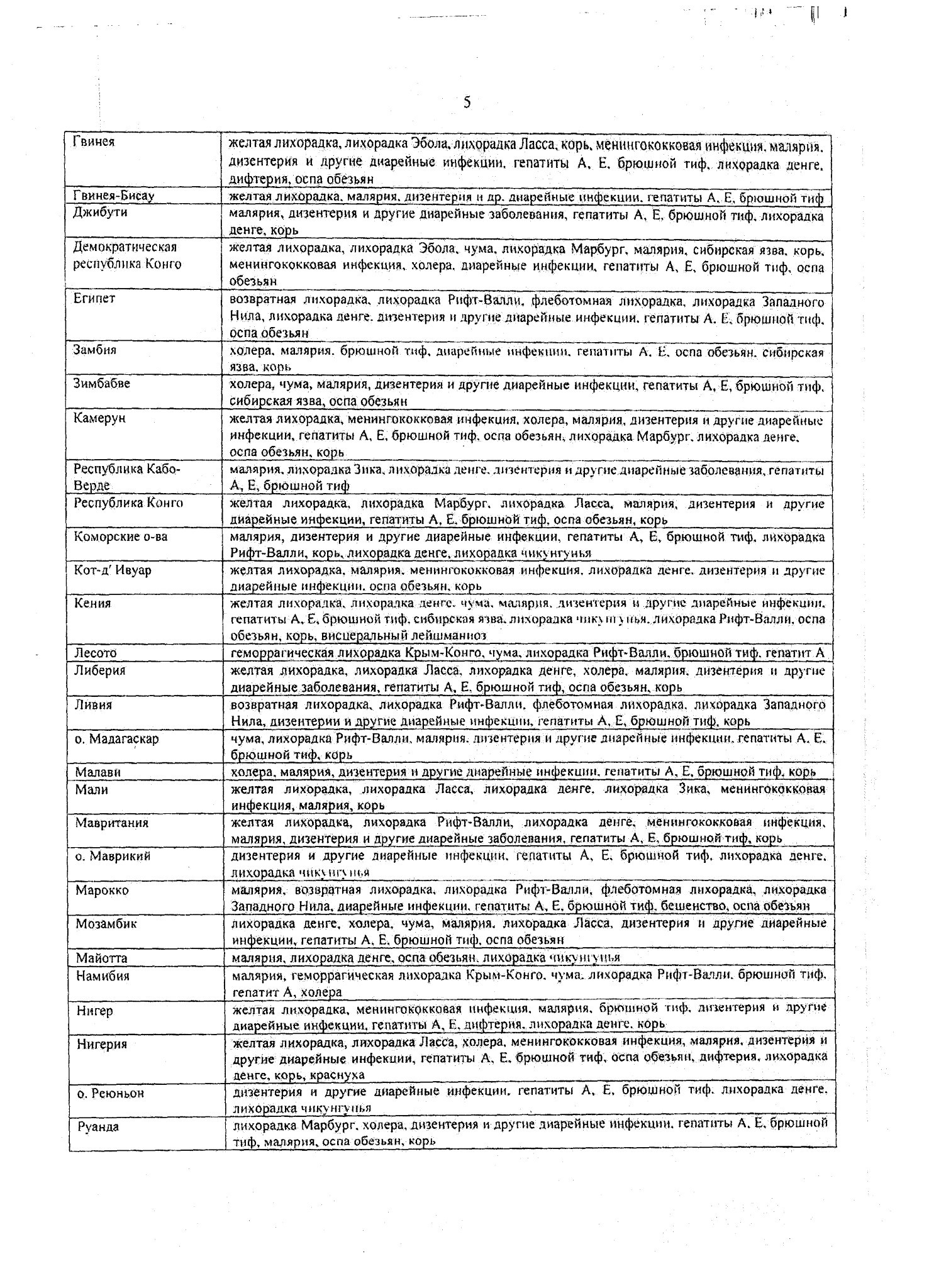 Перечень стран неблагополучных по инфекционным заболеваниям
